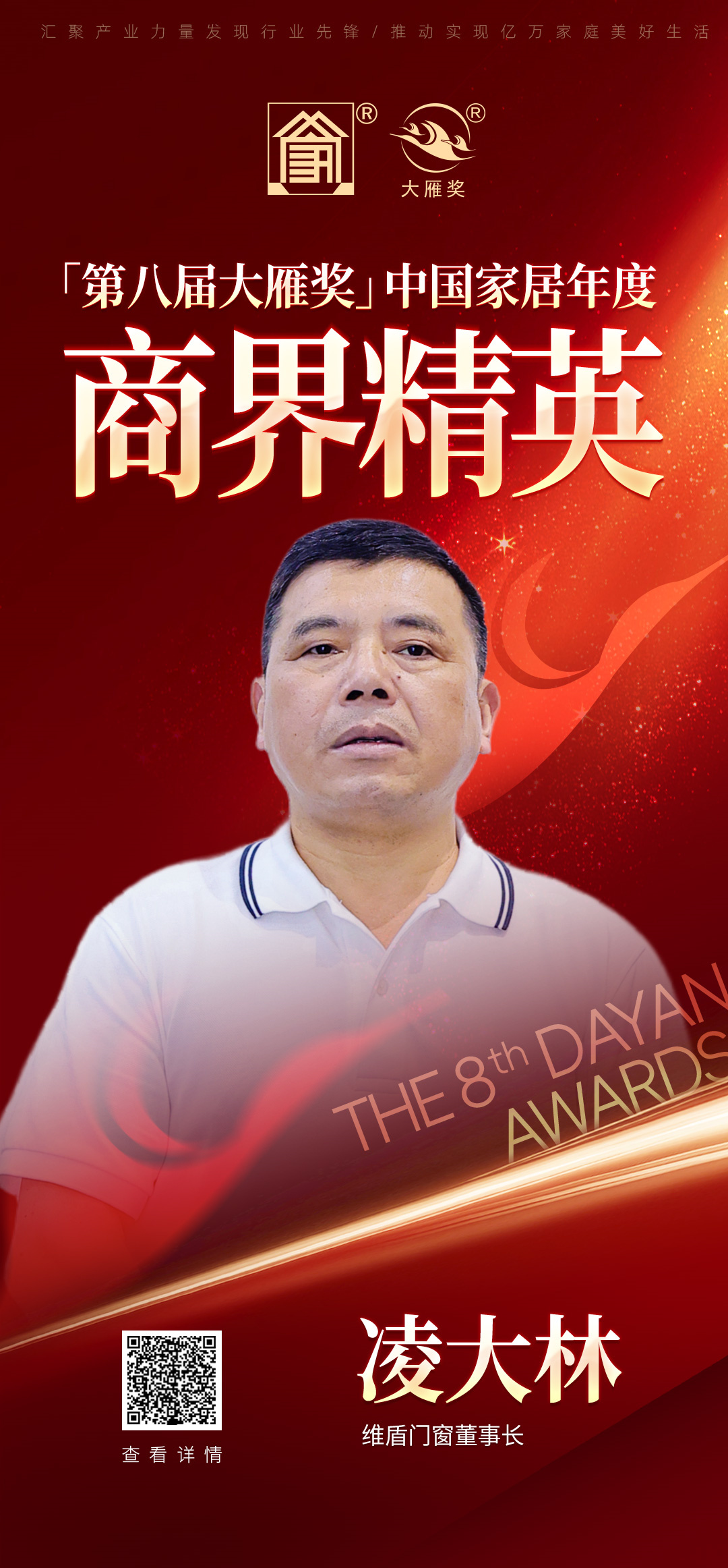 以先進(jìn)之力量,推行業(yè)之發(fā)展。會上,維盾門窗憑借綜合實力,從眾多領(lǐng)軍品牌中脫穎而出,榮獲“第八屆大雁獎中國家居年度星耀品牌”大獎。作為中國門窗行業(yè)領(lǐng)軍人物的維盾門窗董事長凌大林先生榮膺“2024中國家居產(chǎn)業(yè)年度商界精英”的榮譽稱號。此次雙獎加冕,印證維盾門窗對行業(yè)發(fā)展的貢獻(xiàn)和時代榜樣的力量,并展示了業(yè)界內(nèi)外對維盾門窗品牌實力和行業(yè)影響力的認(rèn)可。